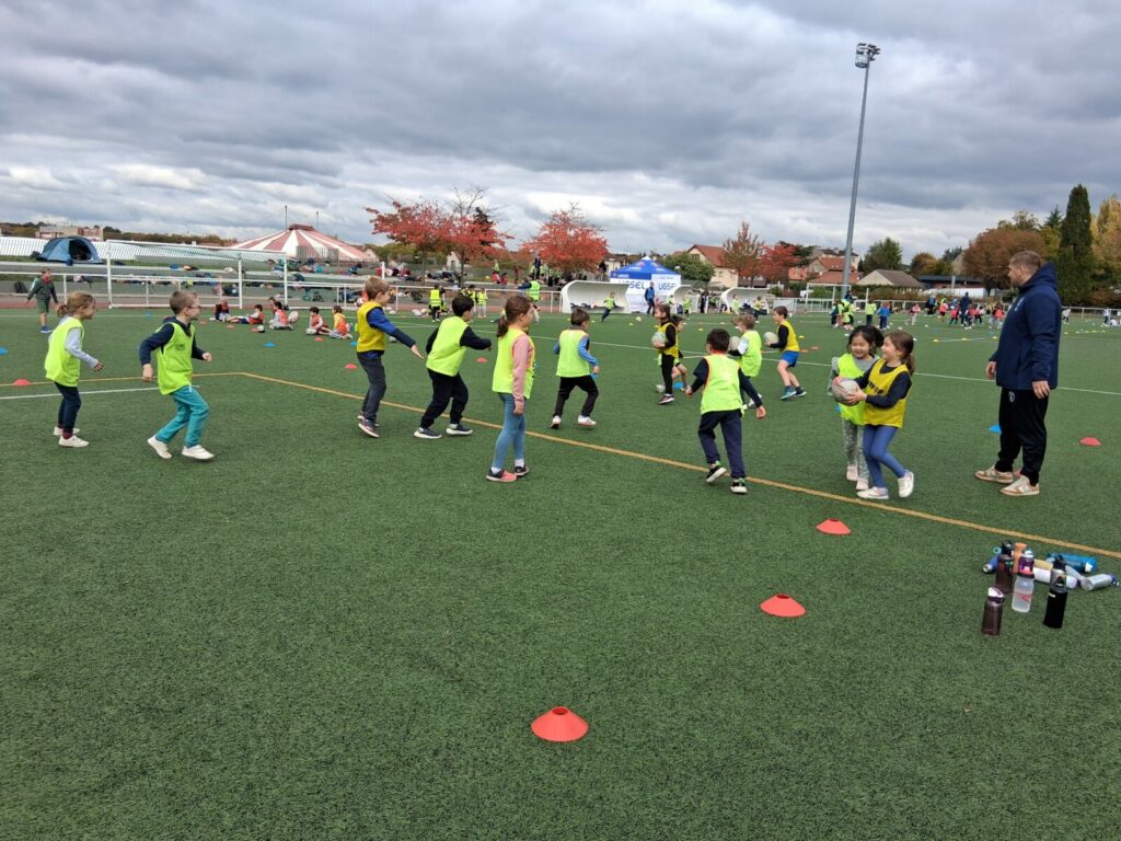 11 classes de CE1 participaient avec une organisation formidable ! Les élèves sont devenus des champions en manipulation du ballon de rugby ! Merci aux parents accompagnateurs pour leur investissement !