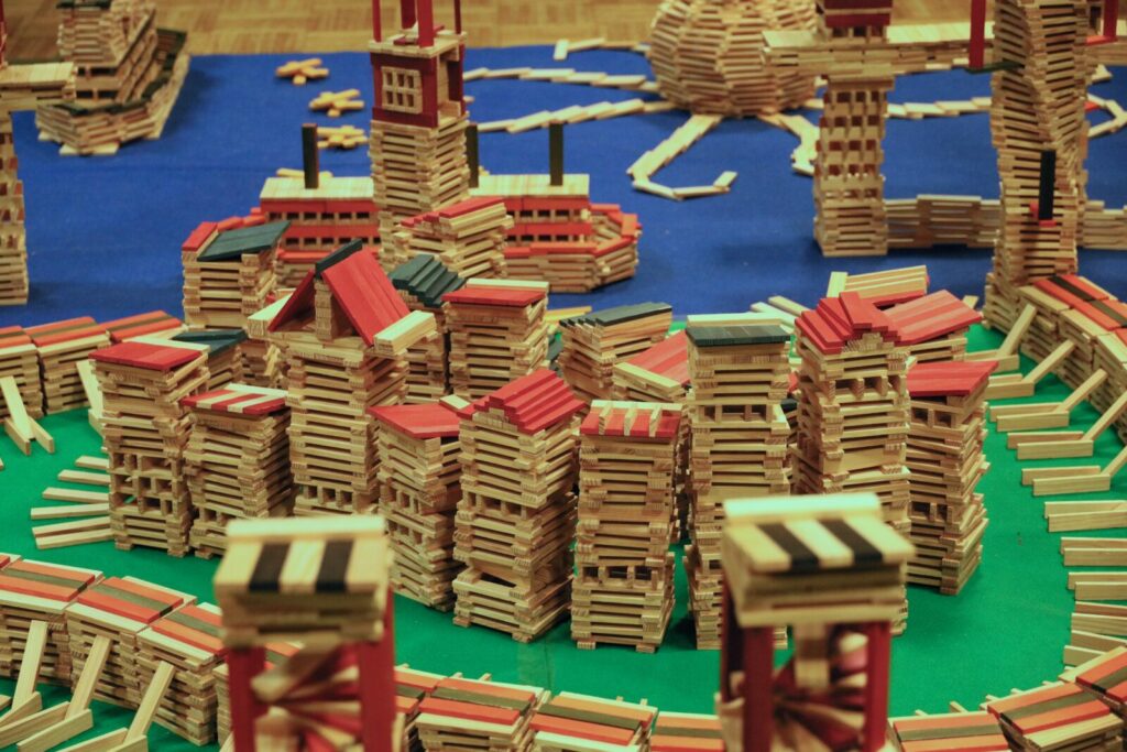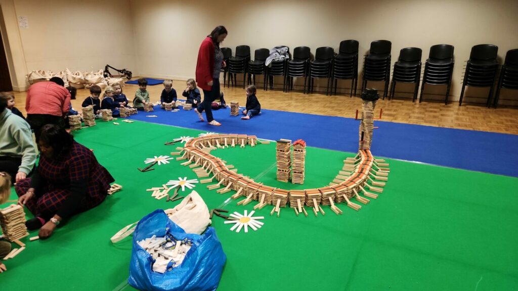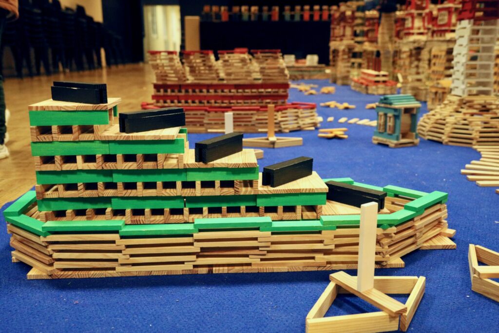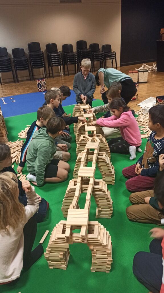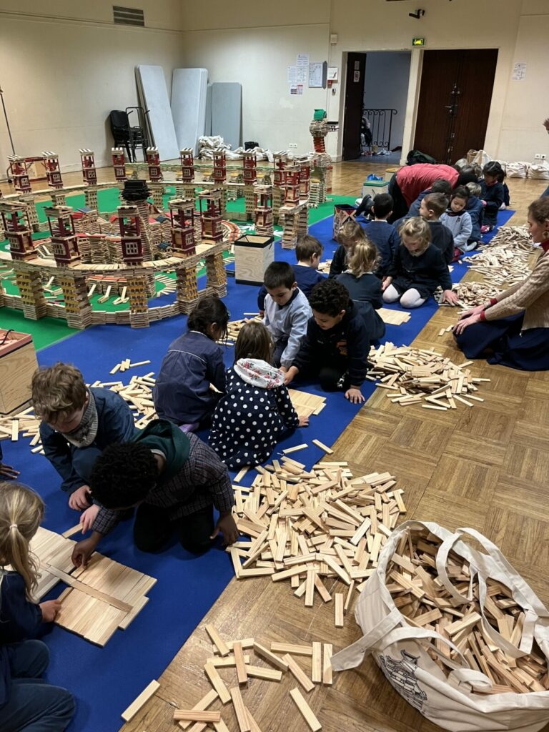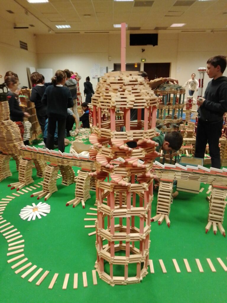 Pour faire vivre notre thème des bâtisseurs, nos enseignantes nous ont offert une belle surprise : une journée entière à bâtir un monde gigantesque avec des kaplas.