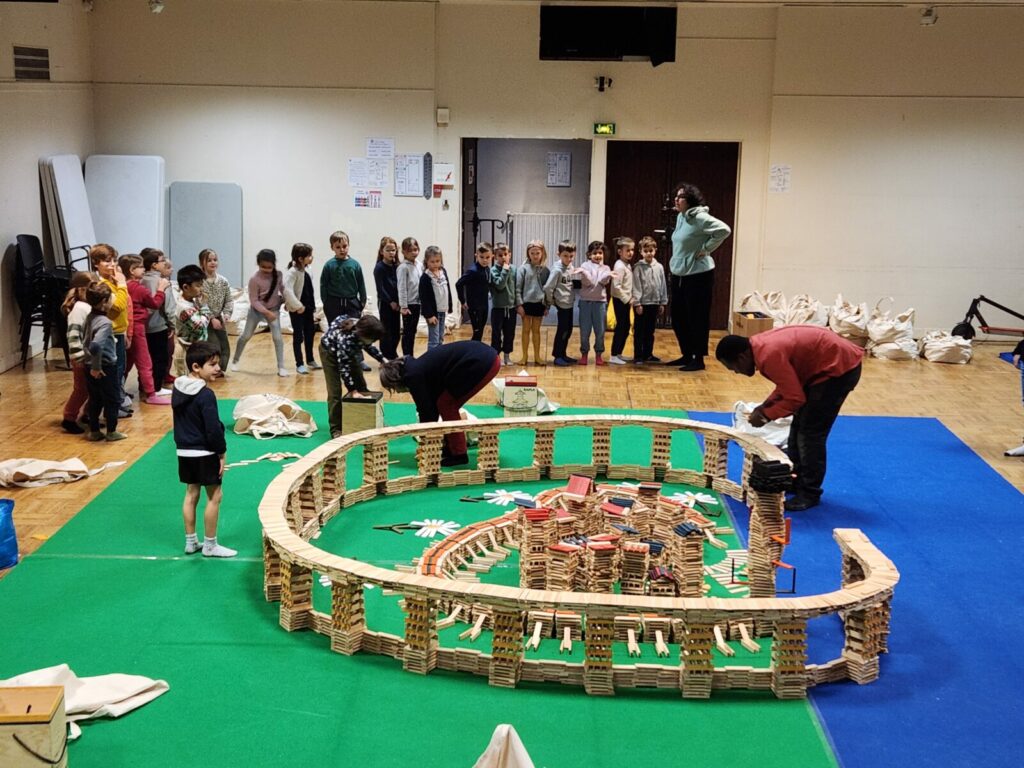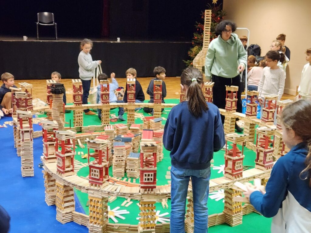 Aidés par deux animateurs, les classes sont venues au fur et à mesure de la journée enrichir cette magnifique construction.